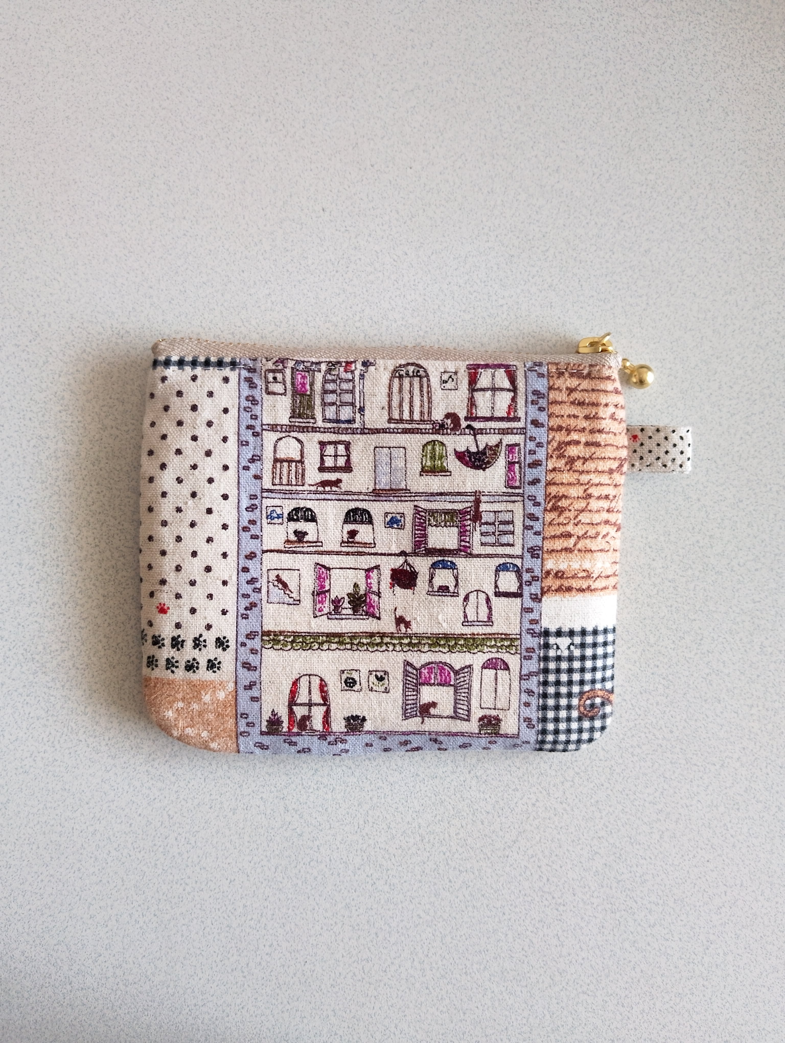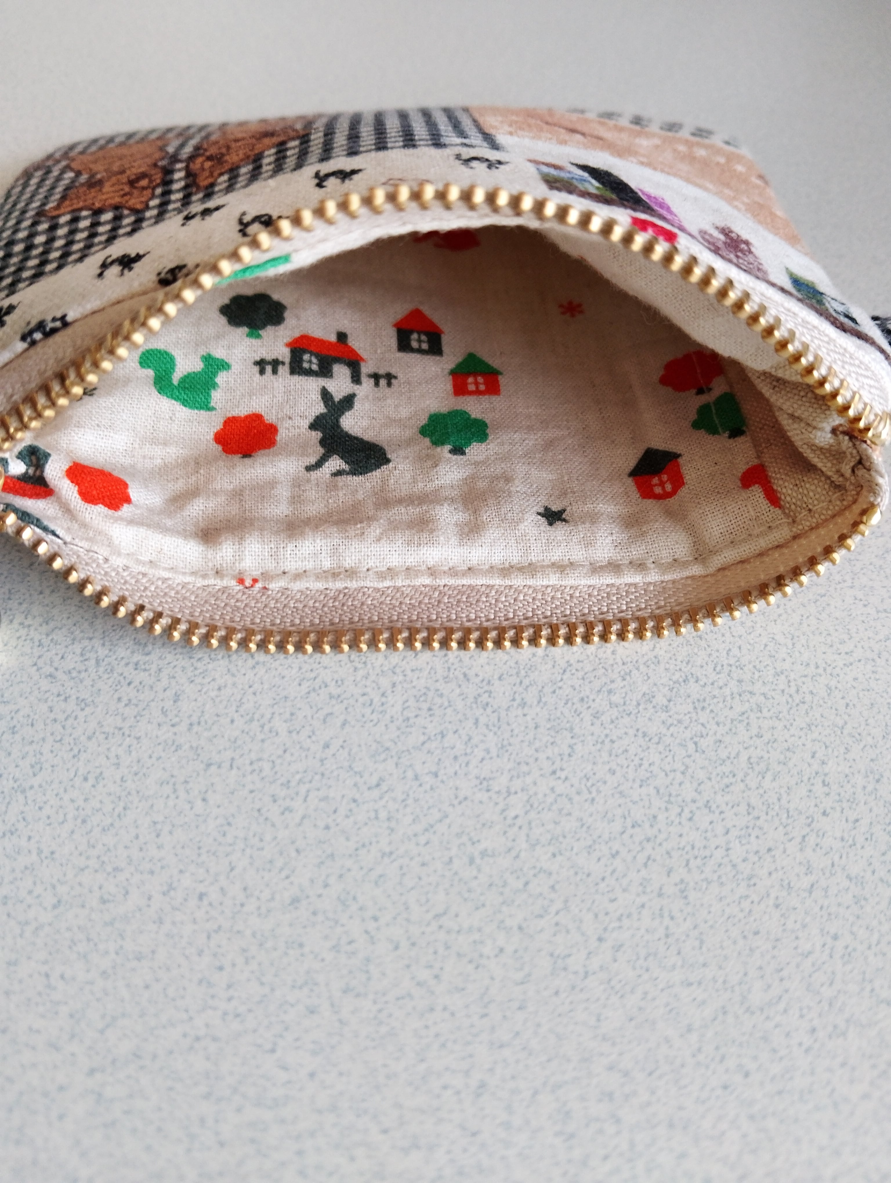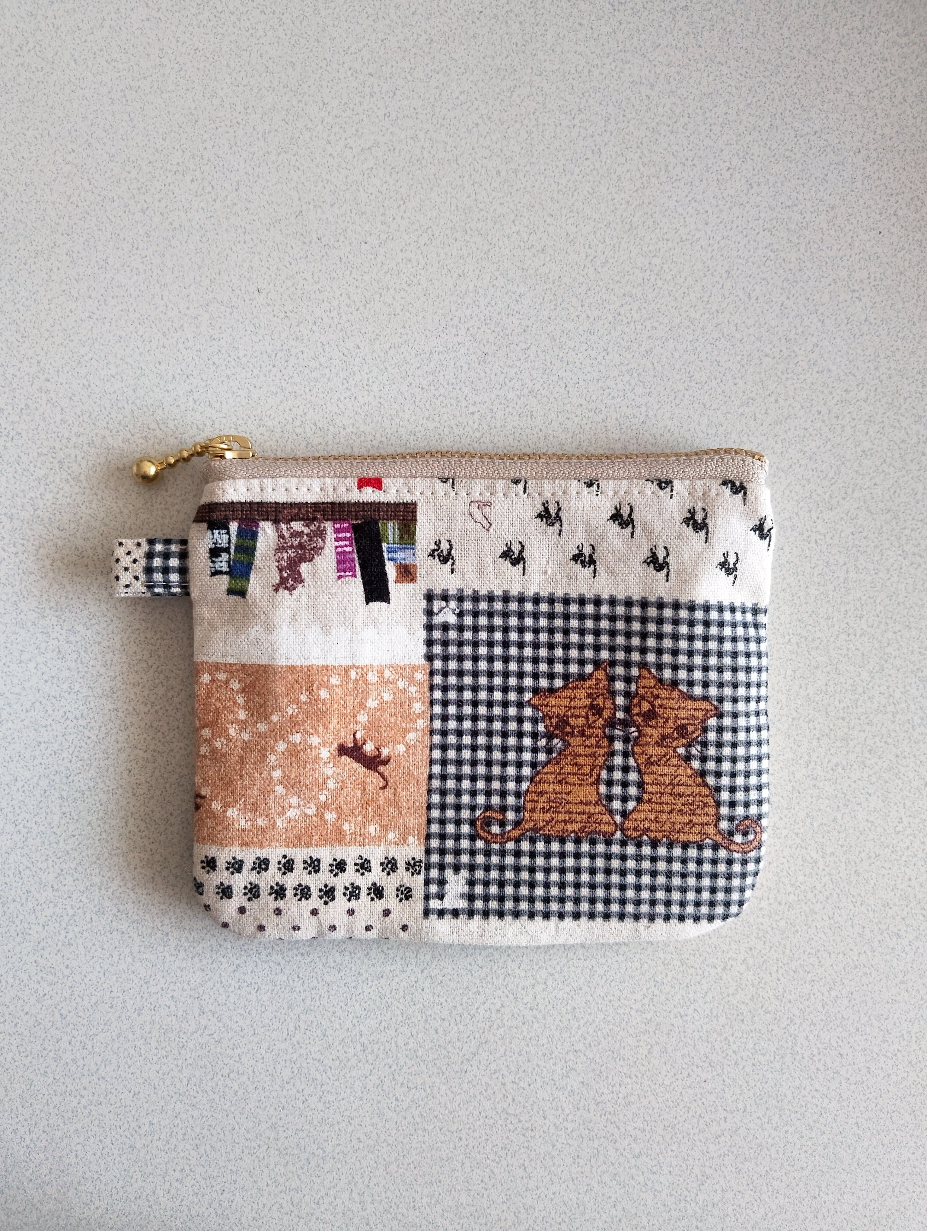 綿麻•猫ちゃん柄ファスナーポーチ小です。