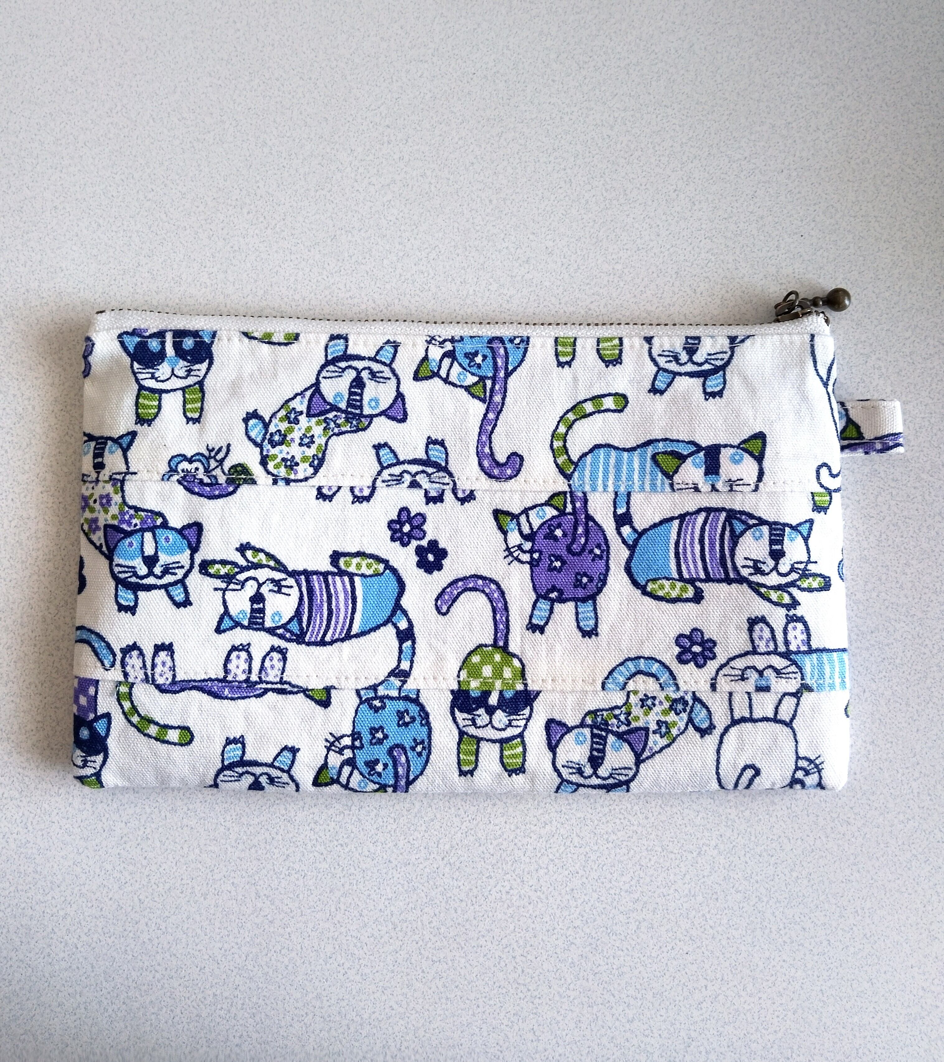 綿•ねこ柄ファスナーポーチです。
