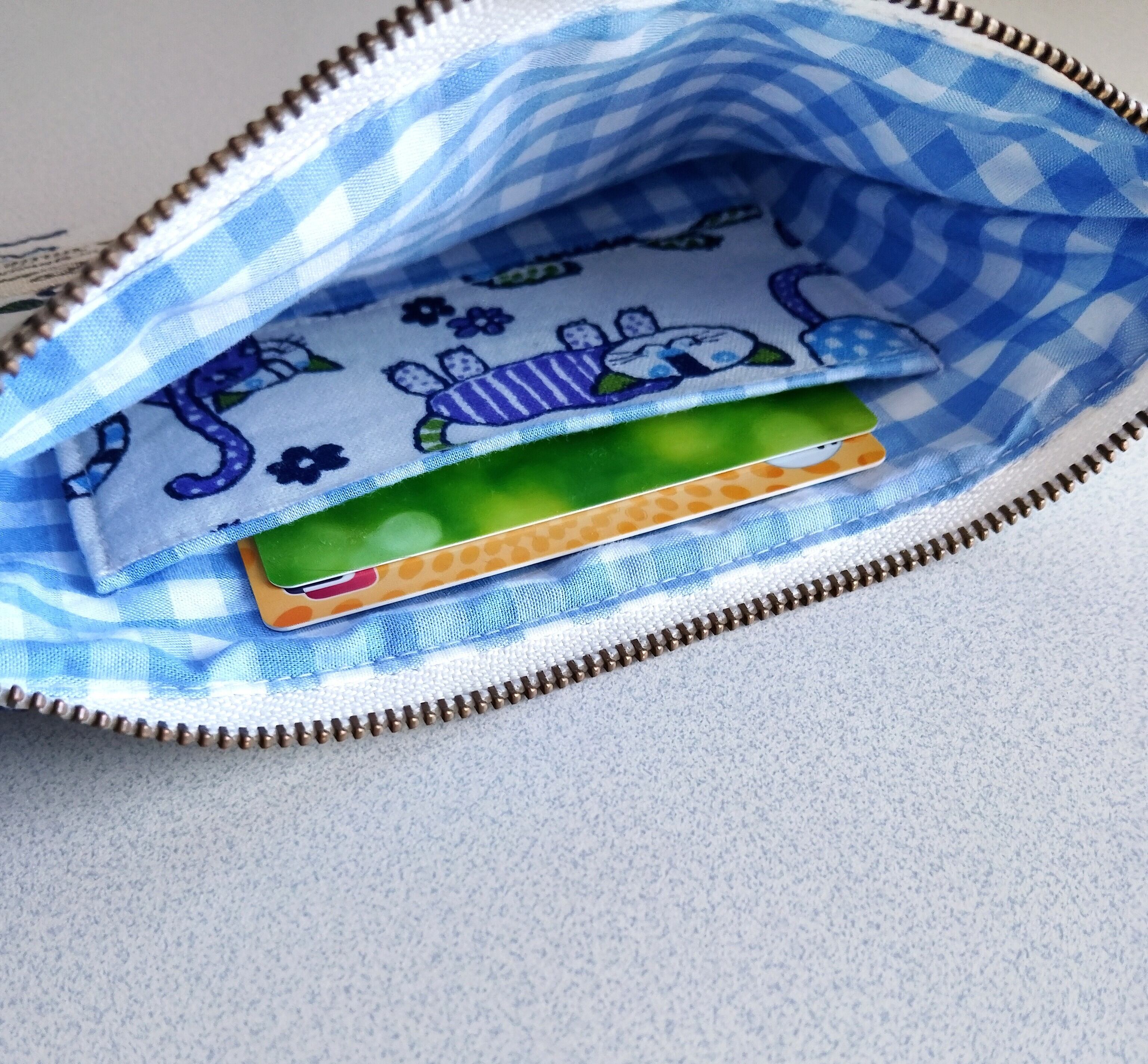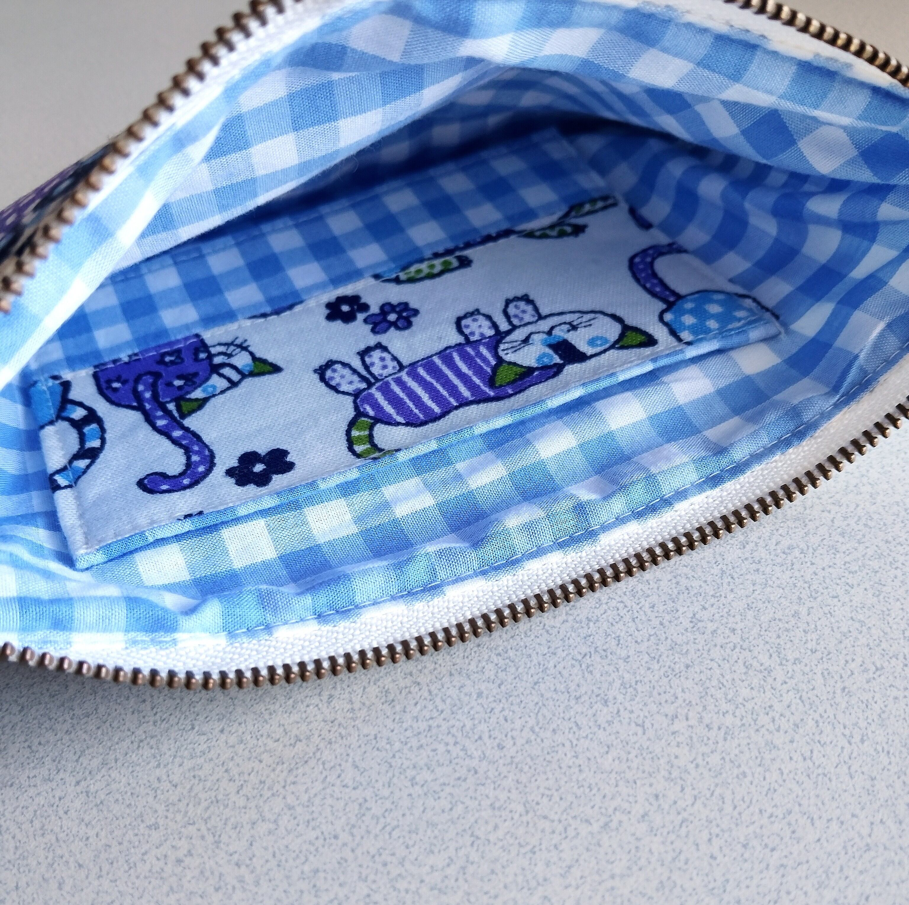 表:綿ねこ柄生地 中:綿ブルーチェック柄生地
