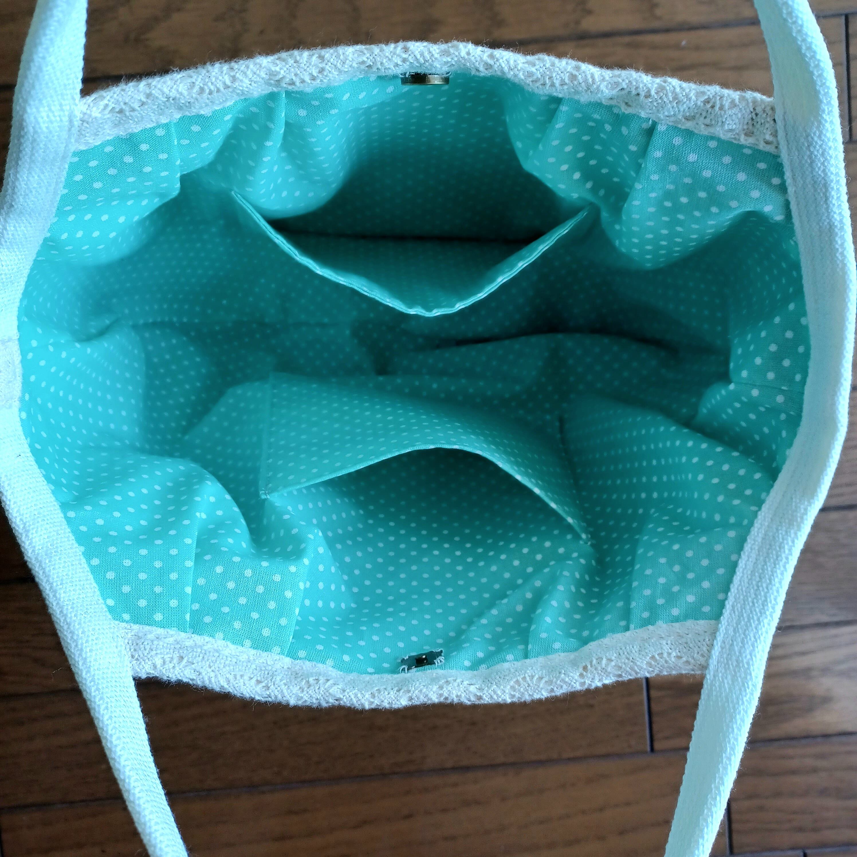 持ち手はハンドタイプでタックがありふっくらとしますので沢山入ります。